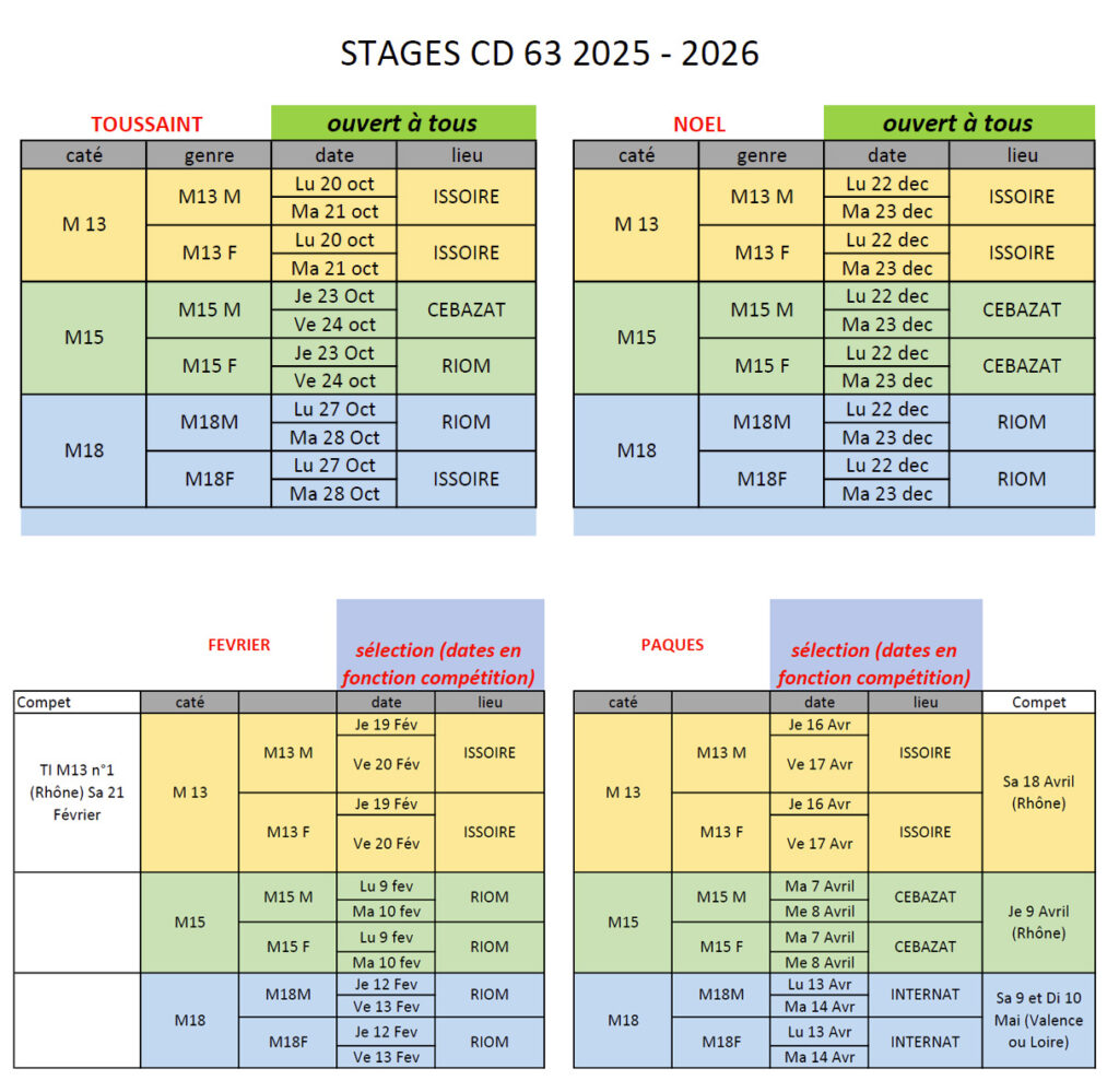 Les stages de février et Pâques sont sur sélection faites par les entraîneurs du CD63.